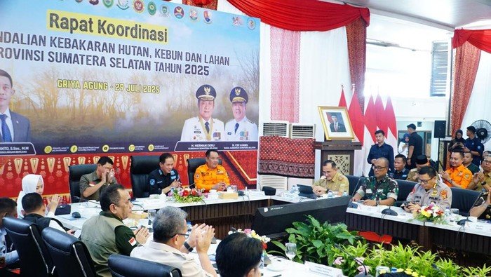 Rapat juga dihadiri jajaran Forkopimda Sumsel, para anggota satuan tugas karhutla baik dari unsur TNI, Polri, pemda hingga relawan lingkungan.”Forkopimda, satgas, dan masyarakat harus bekerja kompak. Kita tidak bisa bekerja sendiri-sendiri dalam menghadapi karhutla. Ini tanggung jawab bersama,” tegasnya.