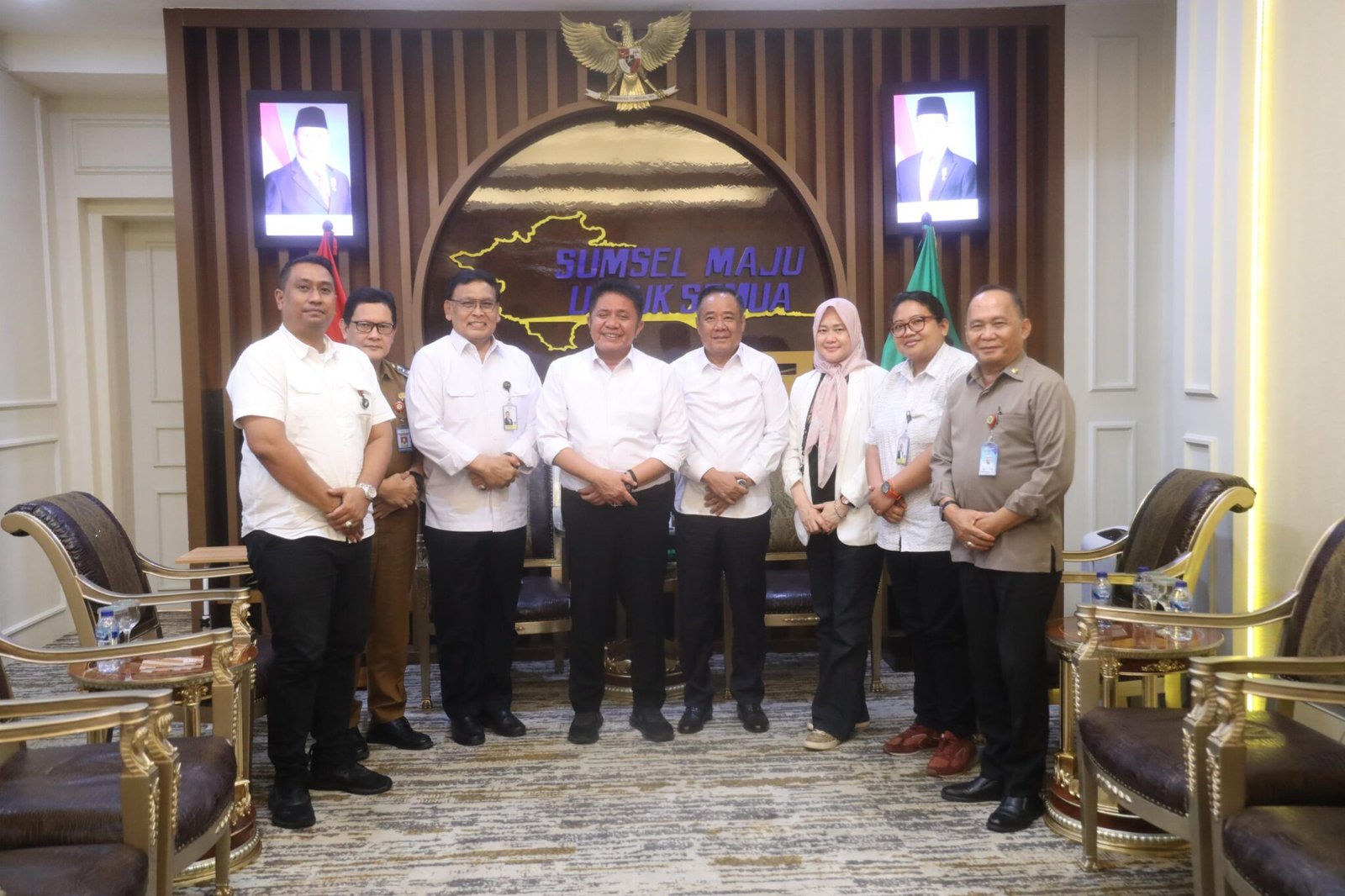 Kunjungan ini disambut langsung oleh Gubernur Sumsel H. Herman Deru di Ruang Tamu Gubernur. Dalam pertemuan yang berlangsung hangat tersebut, Herman Deru menegaskan komitmennya untuk mempercepat revitalisasi rumah sakit (RS) yang menjadi perhatian utama KSP.