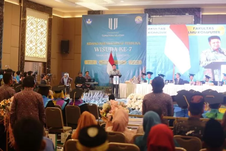 NEGERIKUNEWS.CLICK – Gubernur Sumatera Selatan (Sumsel), Herman Deru, memberikan pesan inspiratif kepada para wisudawan Universitas Sumatera Selatan (USS) dalam acara wisuda yang digelar di Golden Sriwijaya, pada hari Kamis, tanggal 25 November 2025.